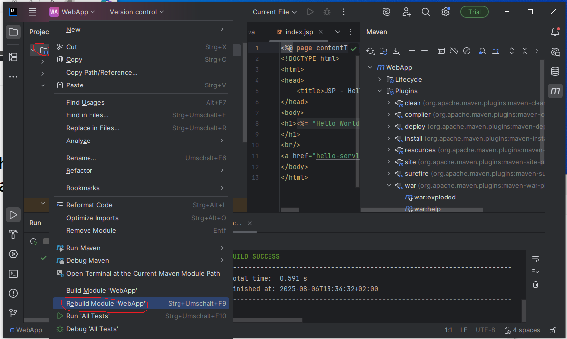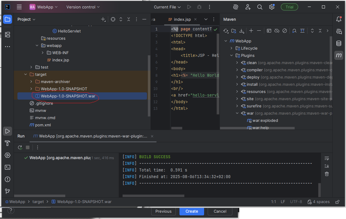 • .war-Archiv erscheint im target/-Verzeichnis des Projekts