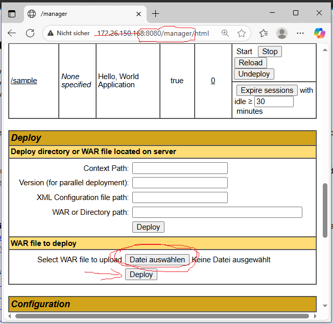 • .war-Datei kann im Manager-UI von Tomcat deployed werden