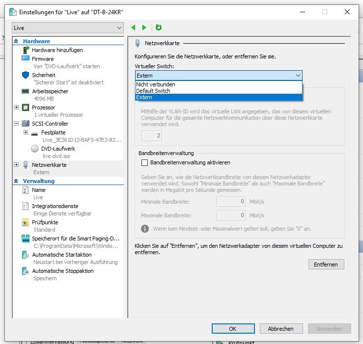 Hyper-V Anbindung ans Netzwerk